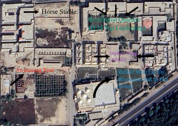 Markaz Subhanallah is a 4.5-acre compound located at the outskirts of Bahawalpur and sits adjacent to the Bahawalpur-Karachi highway. It was inaugurated in 2009 and serves as the headquarters of Jaish-e-Mohammad(JEM). Ahmad Nayeem, a resident of Bahawalpur, sold this property to Rauf Azhar and his partner, Rashid Ahmed, on 23rd March 2009 for PKR 1.5 Million. Since then, this property has become a sprawling complex, having the ability to house about 12,000 students. The facility consists of a swimming pool, a horse stable, a military depot, recreational slides, and millions of dollars worth of SUVs and antiques. Apart from this, there is a network of tunnels that the facility holds for unknown reasons. Most importantly, this facility also functions as the home of some high-ranking JEM members like Masood Azhar (Emir), Mufti Rauf Asghar(De Facto head and Chief of Operations), and their families. The facility is strategically located as Bahawalpur is socio-economically one of the poorest regions in Pakistan; hence, given the range of facilities that the complex offers, it attracts a large number of kids who are eventually brainwashed and recruited for JEM operations in India. The Markaz was maintained and used to be under the charge of Hafiz Jameel (A close relative of the Azhar Family, killed in Indian Strikes). Several terrorist attacks have been planned and orchestrated by JEM leaders from this facility, and the preliminary phase of the terror training that happens in JEM involving hardline Islamic radicalisation takes place at this facility