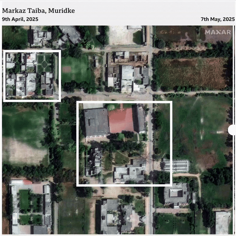 In the ensuing strike at Markaz Taiba, 4-5 Munitions were dropped, each having different impact points across the entire Muridke target system, leading to complete flattening of those target complexes and elimination of major terrorists.