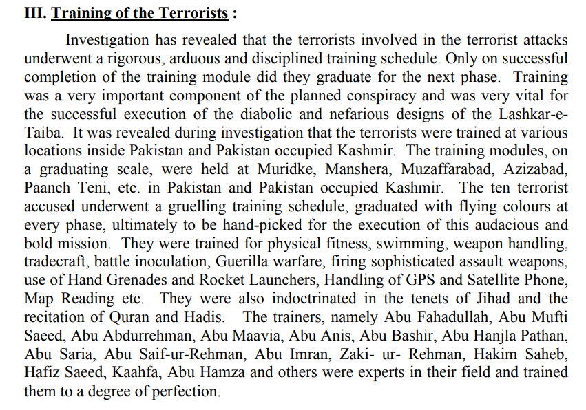 Markaz Taiba was instrumental in orchestrating the attacks of 26/11. The only terrorist that was caught, ‘Ajmal Kasab’ was recruited from Muridke, and all the attackers underwent “Daura-e-Sufa” at the same facility. Apart from this, both David Headley and Tahawwur Rana were in close contact with the leadership in Muridke, and David Headley even had an in-person meeting with them at LET HQ. All the handlers of the 26/11 attacks, including Zaki-ur-Rehman-Lakhvi, Sajid Mir, Muzammil, Abdul Rehman Lakhvi, etc., were handpicked by Hafiz Sayed (Emir of LET) at Muridke.